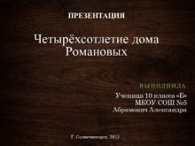 ПРЕЗЕНТАЦИЯ Четырёхсотлетие дома Романовых Выполнила Ученица 10 класса