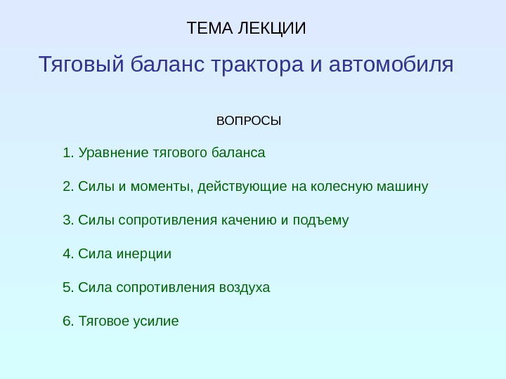 Презентация 05 Тяговый баланс тракторов и автомобилей
