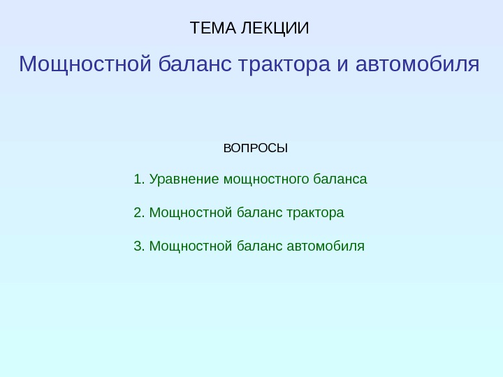 Презентация 06 Мощностной баланс трактора и автомобиля