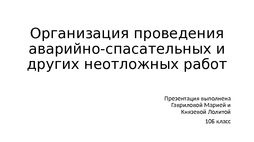 Презентация 13. Организация проведения аварийно-спасательных и других неотложных работ