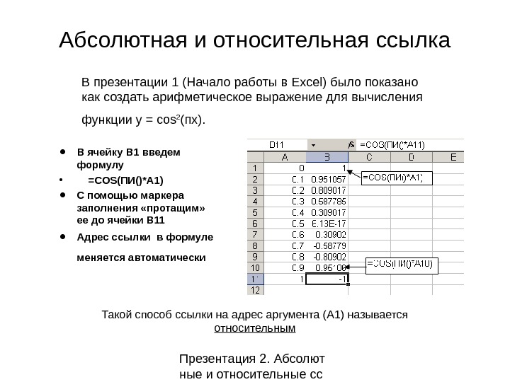 Презентация 2 Абсолютная и относительная ссылка