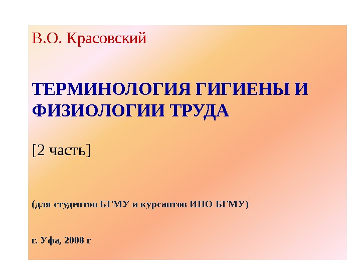 Презентация 2 часть ТЕРМИНОЛОГИЯ ГИГИЕНЫ И ФИЗИОЛОГИИ ТРУДА