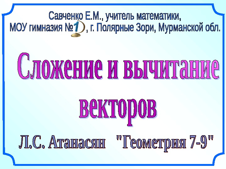 Презентация 2. Сложение и вычитание векторов