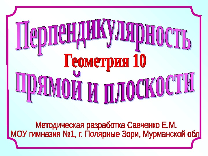 Презентация 20 Перпендикулярность прямой и плоскости