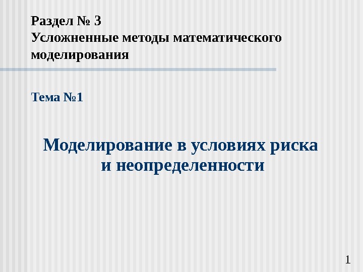 Презентация 3 1 Моделирование в условиях риска и неопределенности