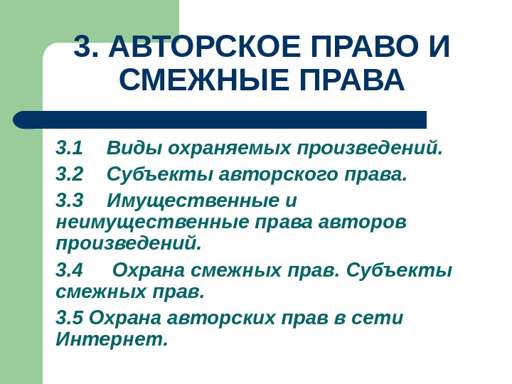 Презентация 3. АВТОРСКОЕ ПРАВО И СМЕЖНЫЕ ПРАВА