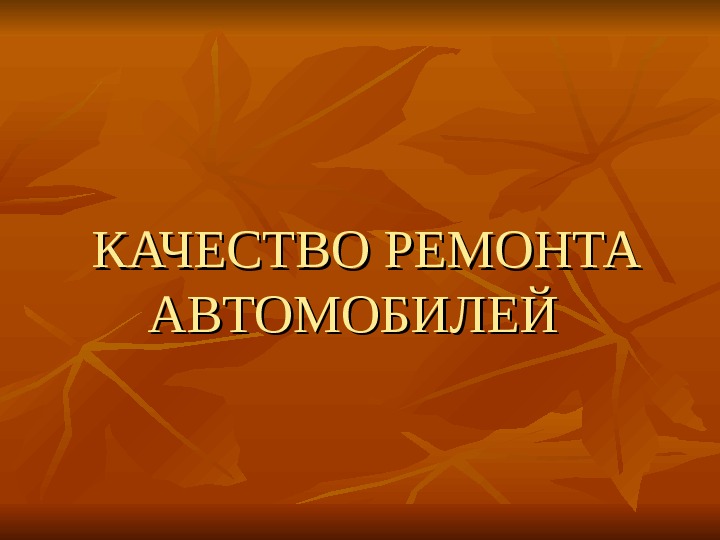 Презентация 6 Качество ремонта автомобилей