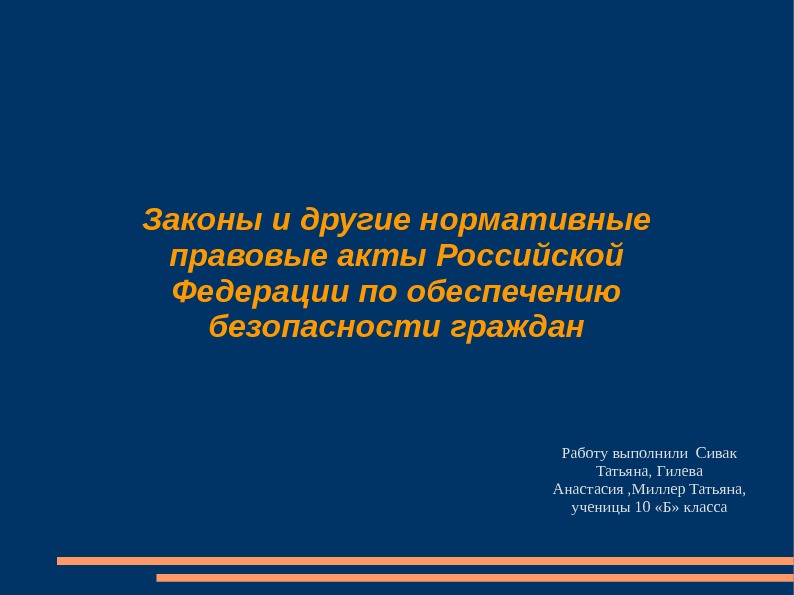 Презентация 6. Законы и другие нормативные правовые акты Российской Федерации по обеспечению безопа
