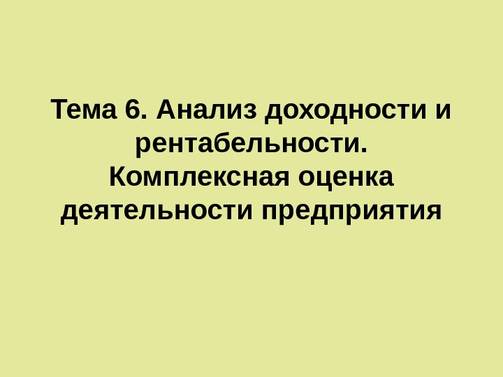 Презентация 6 Тема анализ рентабальности и рейтинг