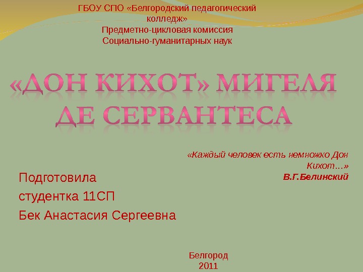 Презентация «ДОН КИХОТ» Мигеля де Сервантеса