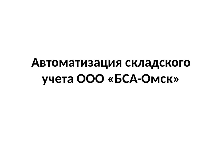 Презентация Автоматизация складского учета ООО «БСА-Омск»
