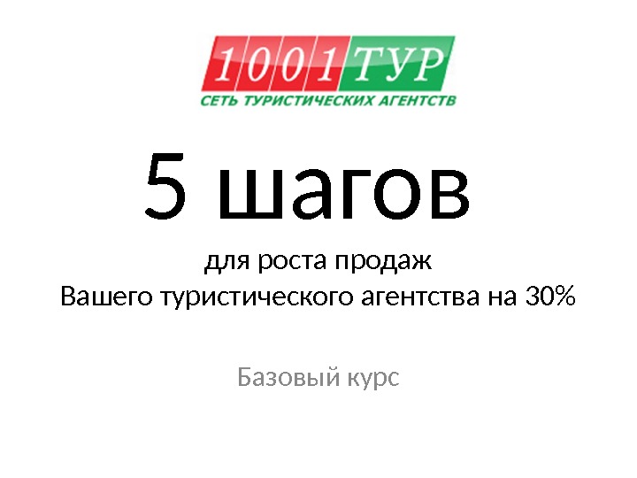 Презентация Базовый курс — 5 шагов. Тур агентство
