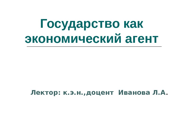 Презентация Государство как экономический агент