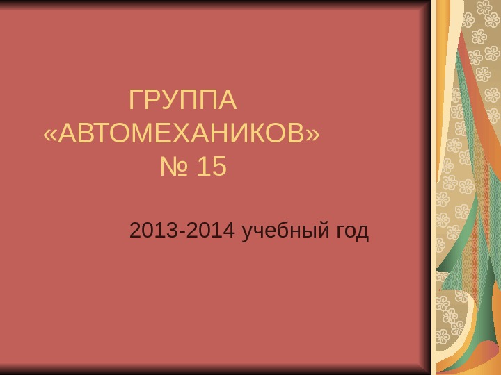 Презентация ГРУППА «АВТОМЕХАНИКОВ»