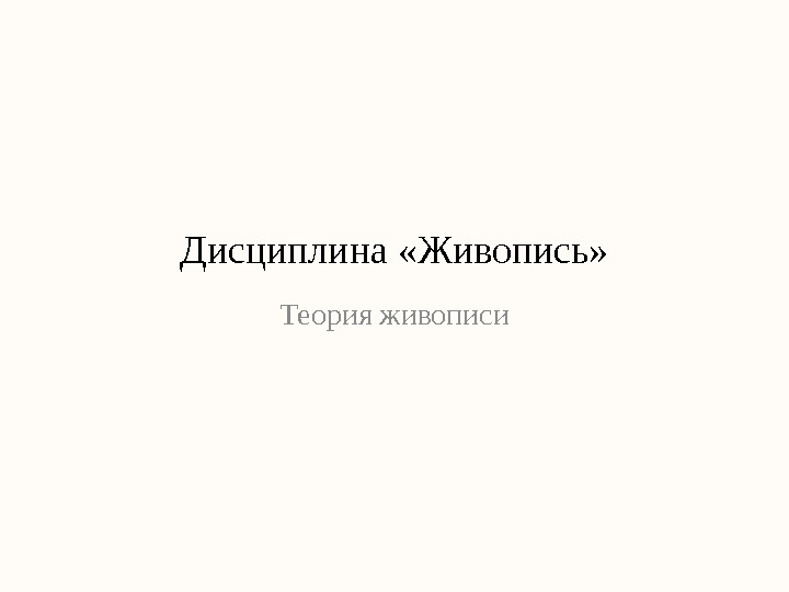 Презентация Дисциплина «Живопись»