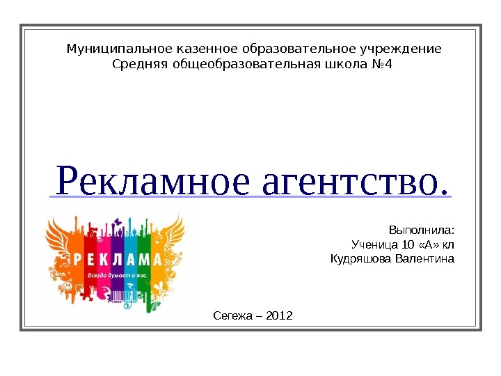 Презентация Задание 5Кудряшова Валярекламное агентство