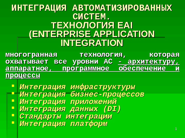 Презентация Лекция 6. Интеграция автоматизированных систем