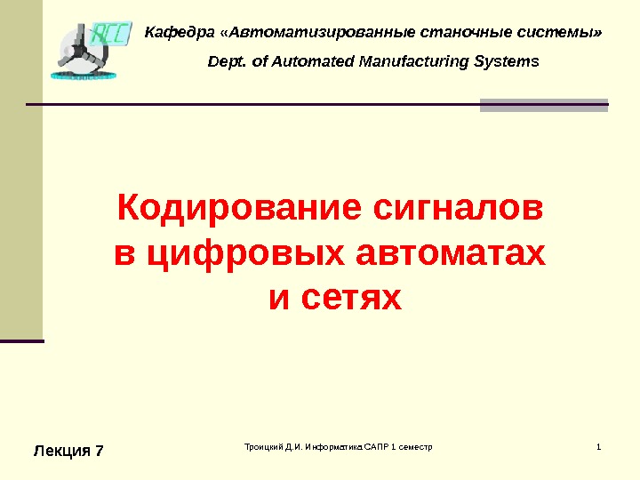 Презентация Лекция 8. АВТОМАТИЯ-2010
