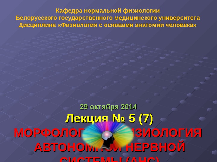 Презентация Лекция 7. ФИЗИОЛОГИЯ и МОРФОЛОГИЯ АВТОНОМНОЙ НЕРВНОЙ СИСТЕМЫ АНС