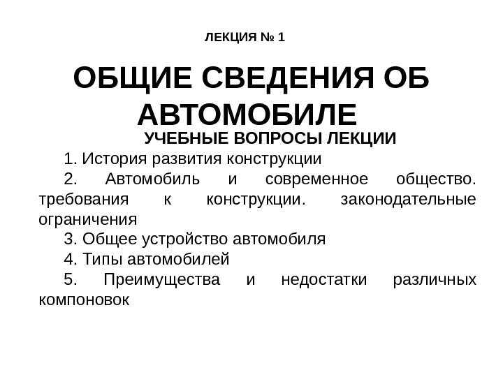 Презентация ОБЩИЕ СВЕДЕНИЯ ОБ АВТОМОБИЛЕ