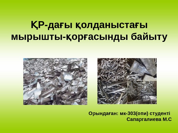 Презентация Р-даы олданыстаы мырышты-орасынды байыту