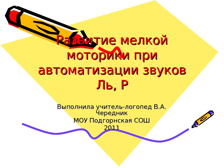 Презентация Развитие мелкой моторики при автом зв ЛЬ Р