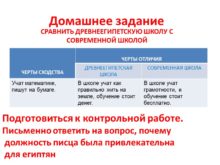 СРАВНИТЬ ДРЕВНЕЕГИПЕТСКУЮ ШКОЛУ С СОВРЕМЕННОЙ ШКОЛОЙ Домашнее задание
