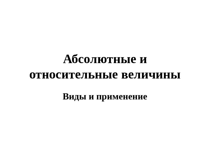 Презентация Абсолютные и относительные величины