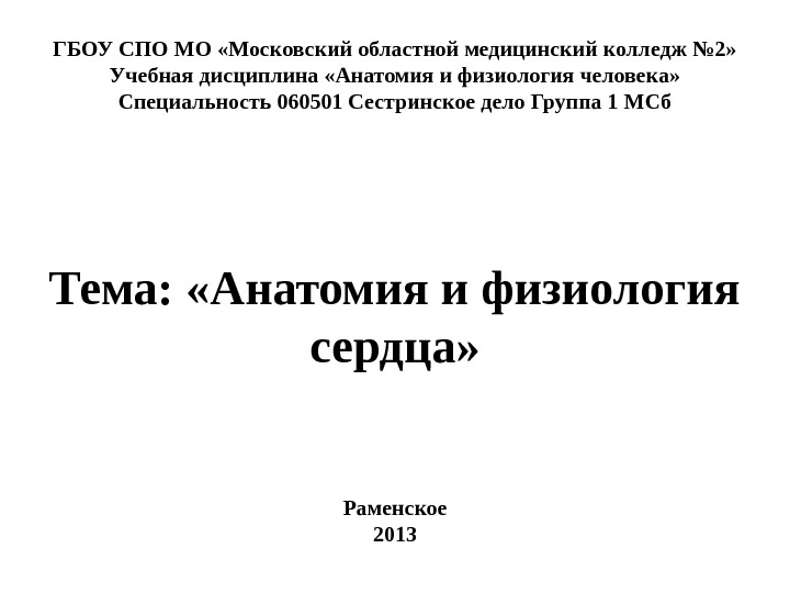 Презентация Анатомия и физиология сердца
