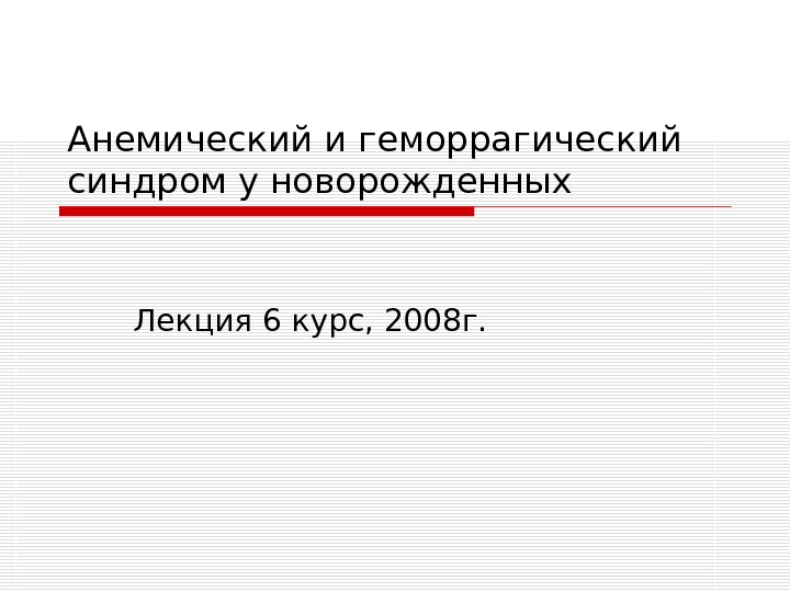 Презентация Анемический и геморрагический синдром у новорожденных