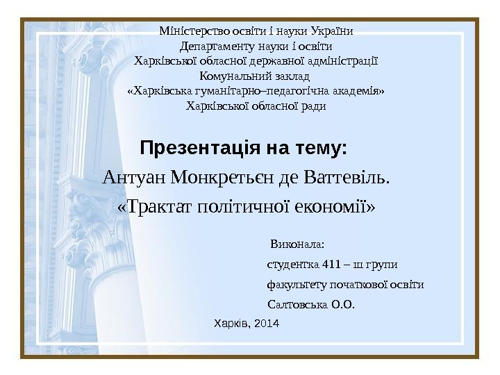 Презентация Антуан Монкретьн де Ваттевіль