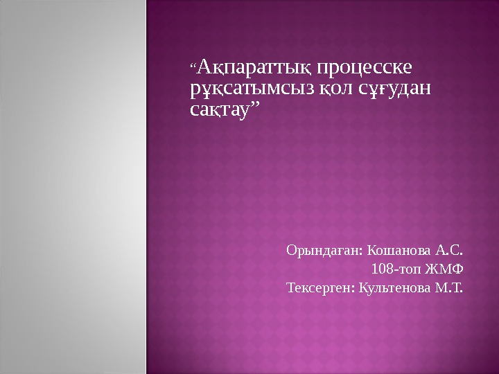 Презентация Апаратты процеске рсатсыз кірісуден сатану СРС