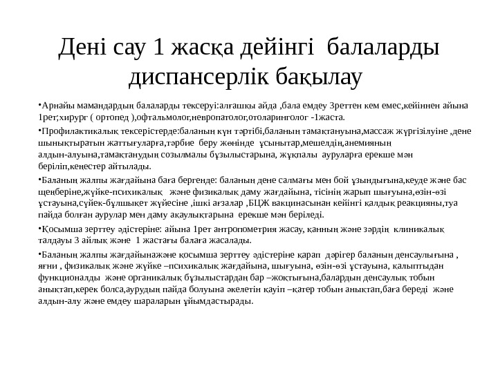 Презентация Дені сау бір жаса дейінгі балаларды диспансерлік баылау