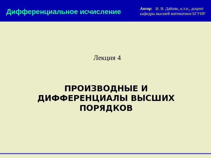 Презентация ДИФОП-Лекция-04-Производные и дифференциалы высших порядков