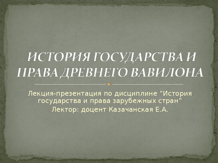 Презентация ИСТОРИЯ ГОСУДАРСТВА И ПРАВА ДРЕВНЕГО ВАВИЛОНА