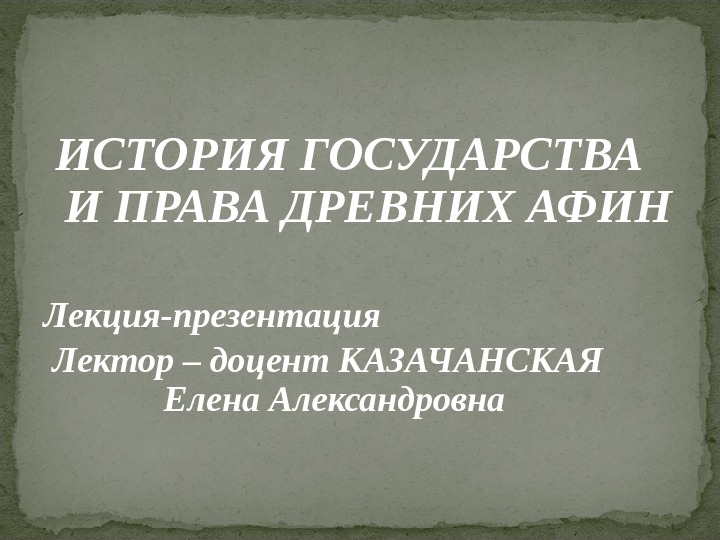 Презентация ИСТОРИЯ ГОСУДАРСТВА И ПРАВА ДРЕВНИХ АФИН