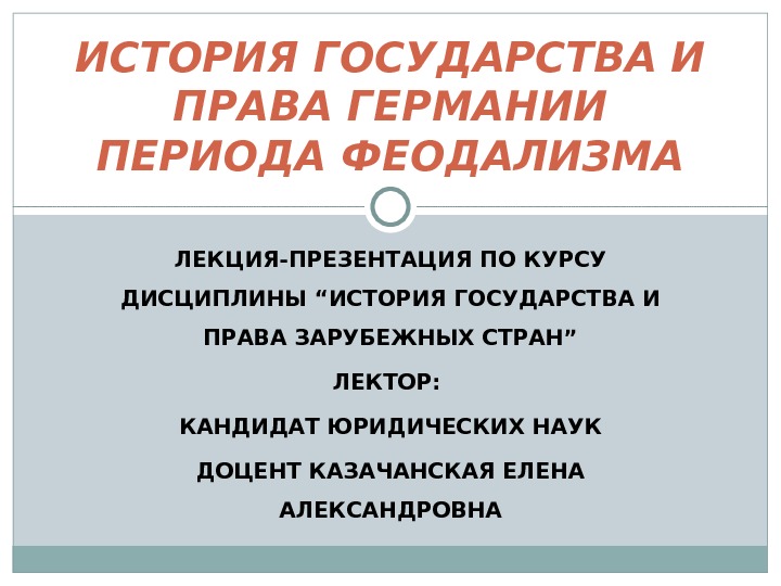 Презентация ИСТОРИЯ ГОСУДАРСТВА И ПРАВА ГЕРМАНИИ ПЕРИОДА ФЕОДАЛИЗМА