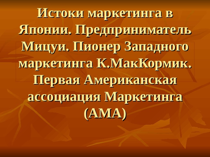 Презентация Истоки маркетинга в Яп.