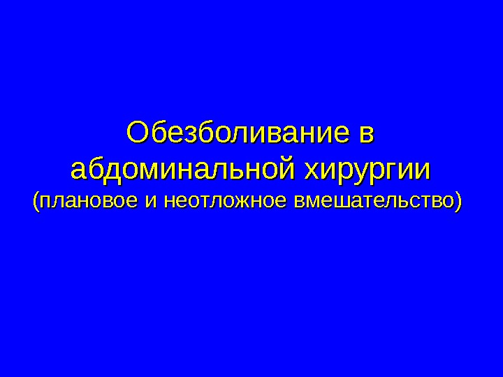 Презентация Обезболивание в абдоминальной хирургии плановое и неотлжное