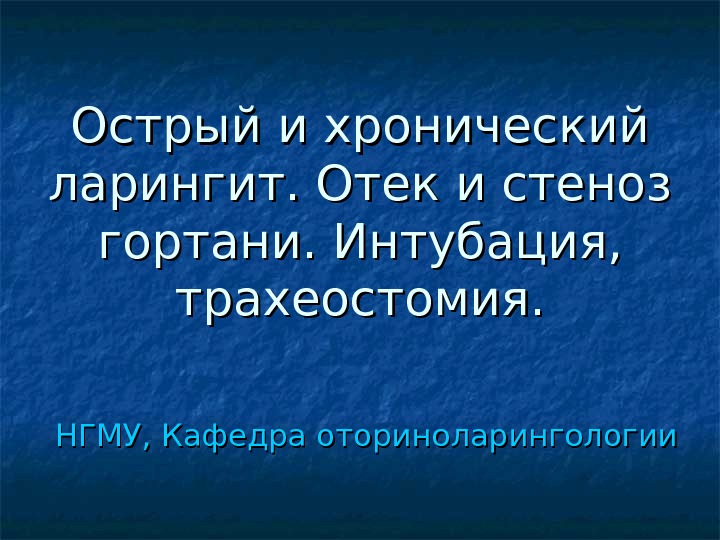 Презентация Острый и хронический ларингит. Отек и стеноз гортани. Интубация трахеостомия