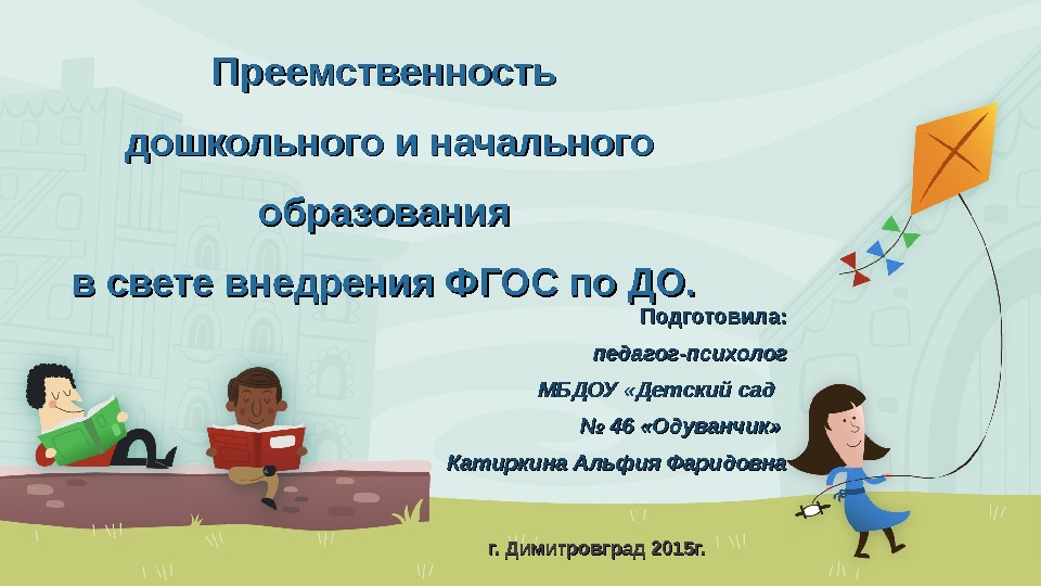 Презентация ПРЕЕМСТВЕННОСТЬ ПО ФГОС ДО И НОО — тема вытупления на МО педагогов-психологов