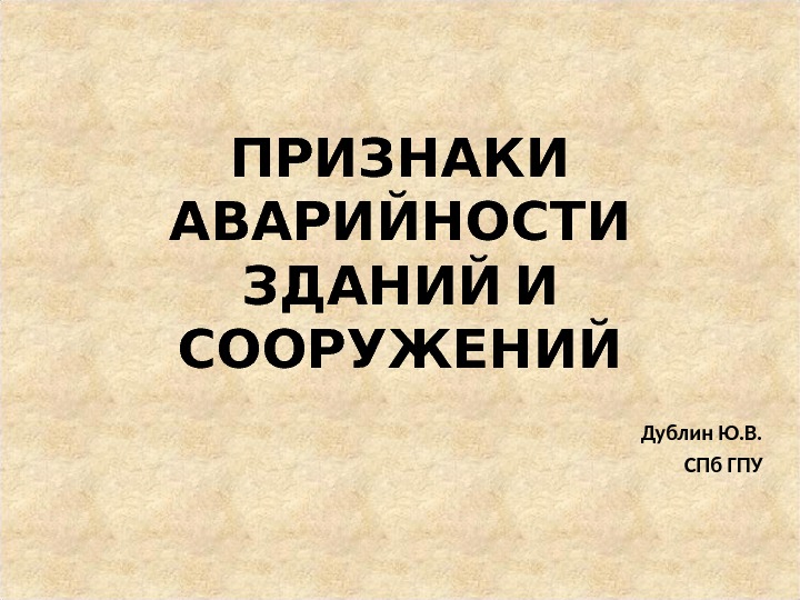 Презентация ПРИЗНАКИ АВАРИЙНОСТИ ЗДАНИЙ И СООРУЖЕНИЙ
