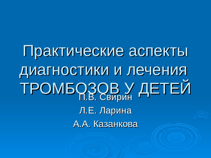 Презентация Практические аспекты диагностики и лечения тромбозов у детей