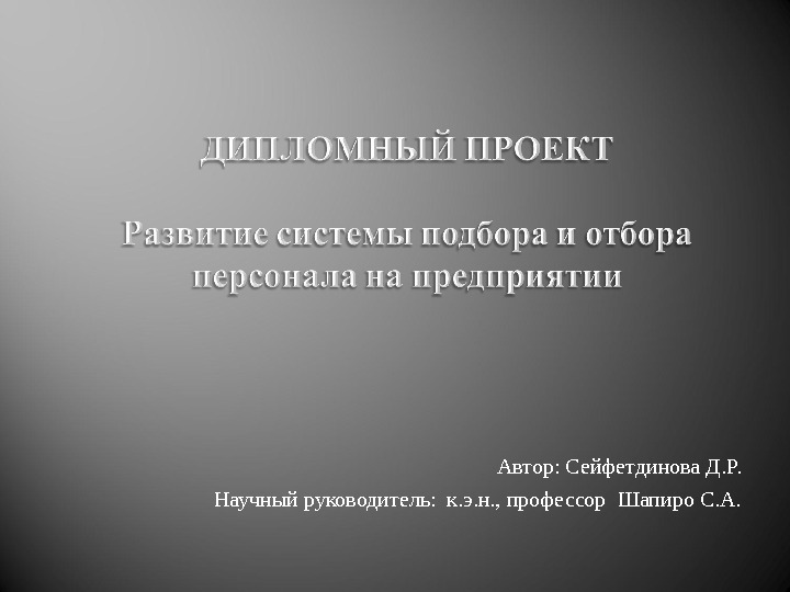 Презентация Развитие системы подбора и отбора персонала на предприятии
