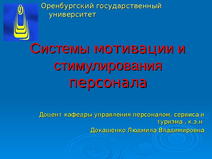 Презентация РТ ОЗО магистрантам Системы мотивации и стимуоирования персонала общая