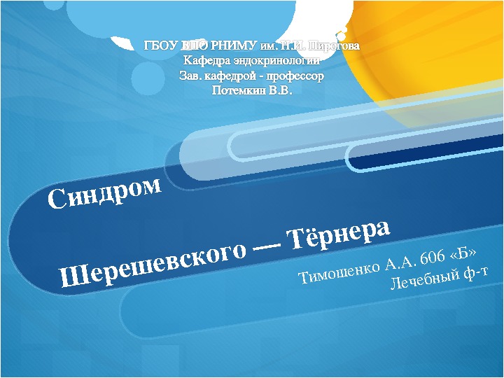 Презентация Синдром Шерешевского-Тернера