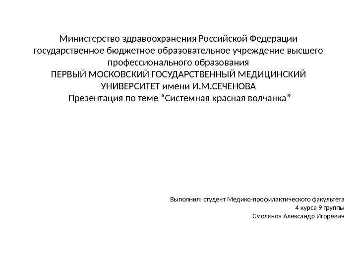 Презентация Системная красная волчанка Гарипова А.К. Л604-А