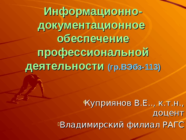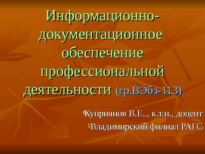 Презентация Слайды Лекции т.1 44сл.дисц.Информ.-докум. обесп.проф.деят.ВЭбз113апр.2015г