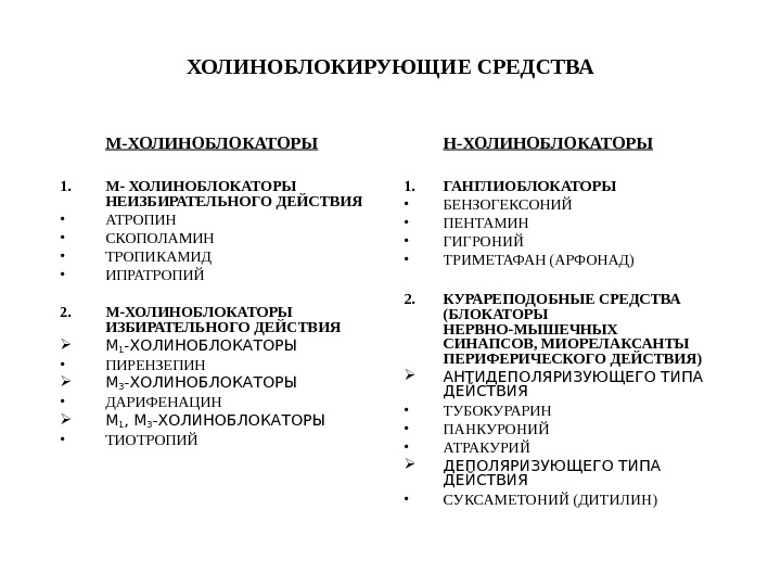 Презентация Справочный материал по Фармакологии на тему Холиноблокаторы. Л.А. Овсянникова