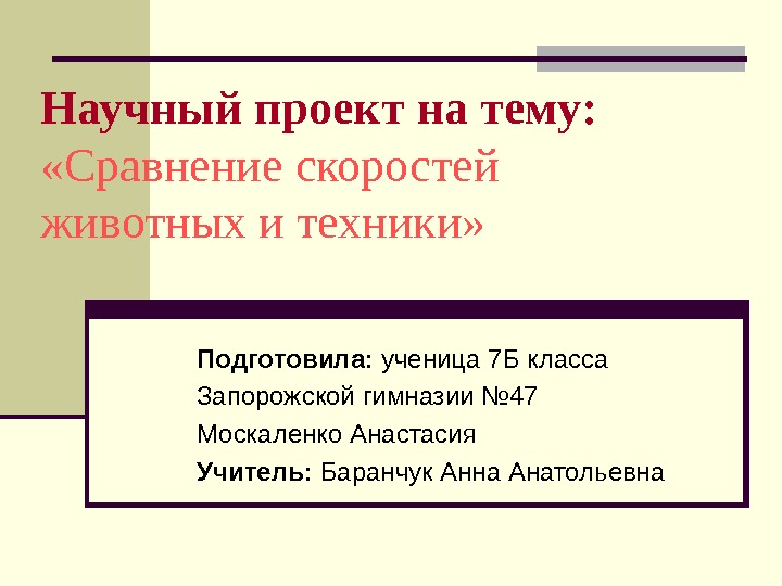 Презентация Сравнение скоростей животных и техники. Москаленко